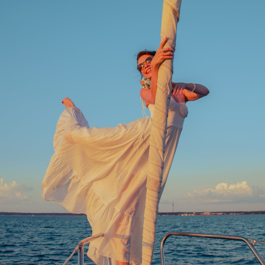 Обувь должна быть со светлой (!) подошвой, без каблука. В случае, если у вас неподходящая обувь, вы можете разуться и быть на яхте босиком.