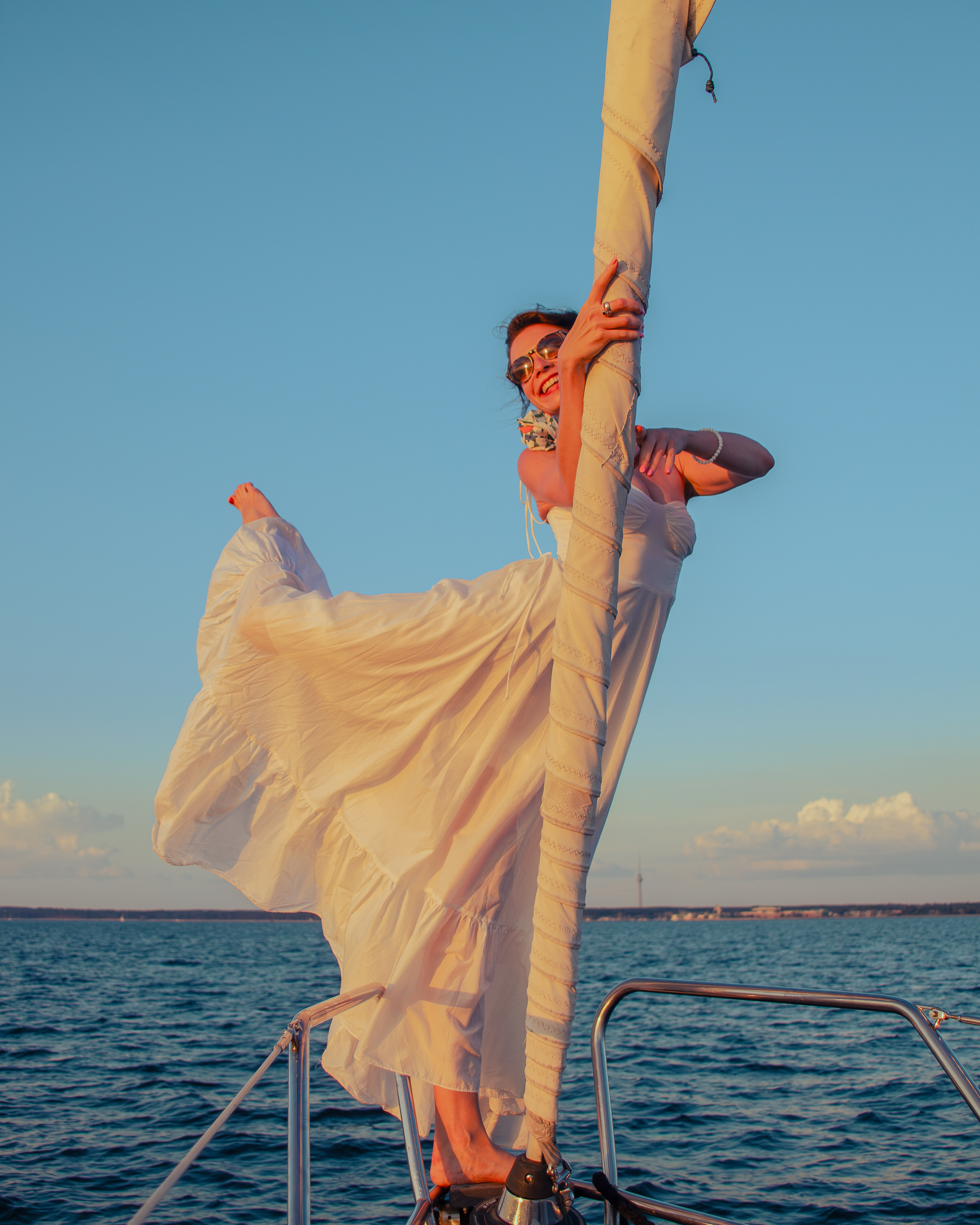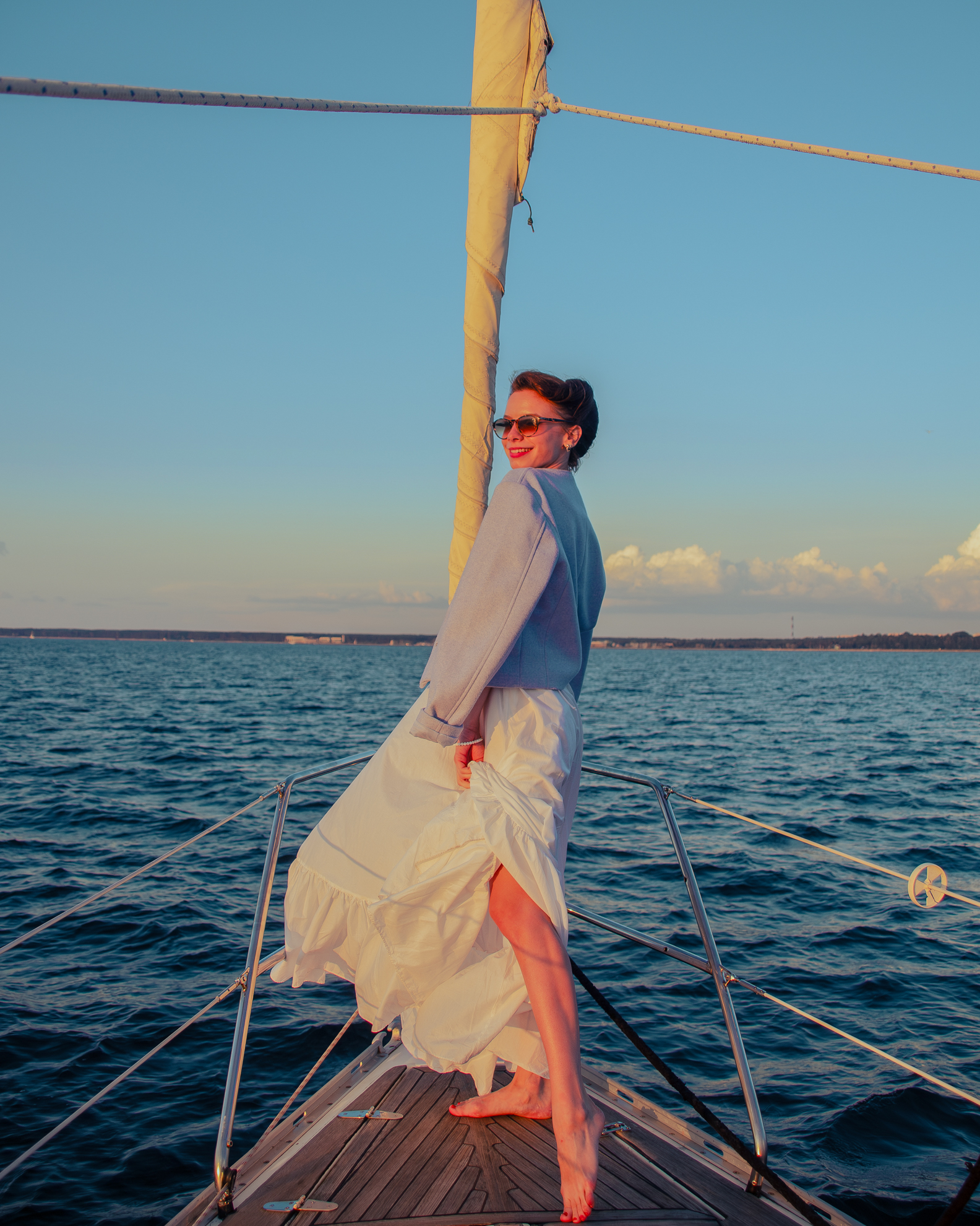 Обувь должна быть со светлой (!) подошвой, без каблука. В случае, если у вас неподходящая обувь, вы можете разуться и быть на яхте босиком.